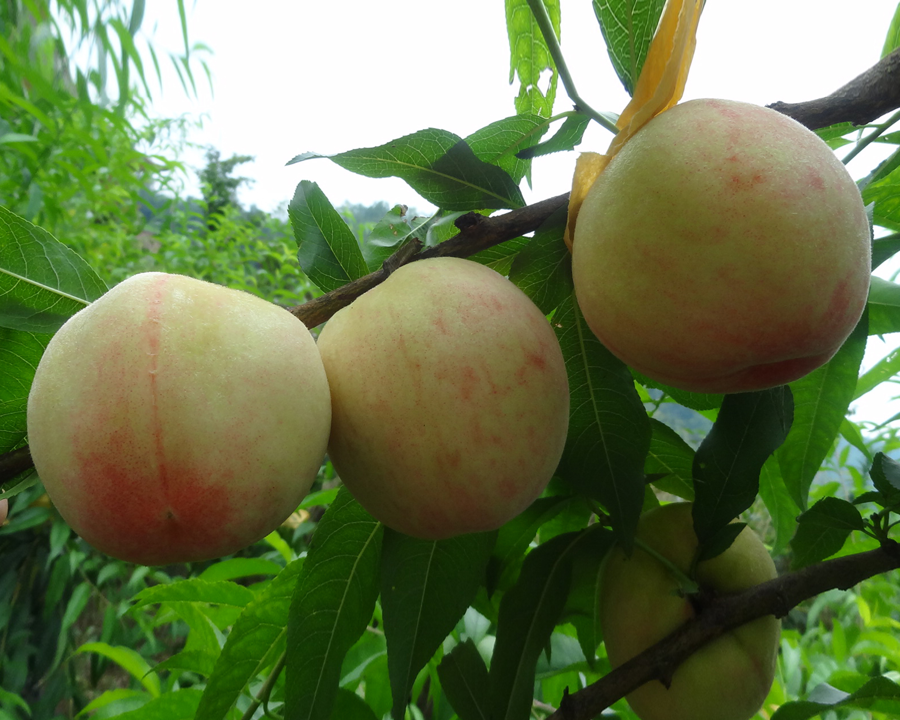 日川白鳳桃:日川白鳳是普通白鳳的芽變,果子成熟期在六月上旬,比普通白鳳提前上市十天左右,成熟單個重達300克左右,果形較普通白鳳桃大,色澤白里透紅,肉質細嫩化渣,水分充足,含糖量特高,市場上很少見,果園價在20塊錢一斤,是一個取代普通白鳳桃優良品種,值得發展。