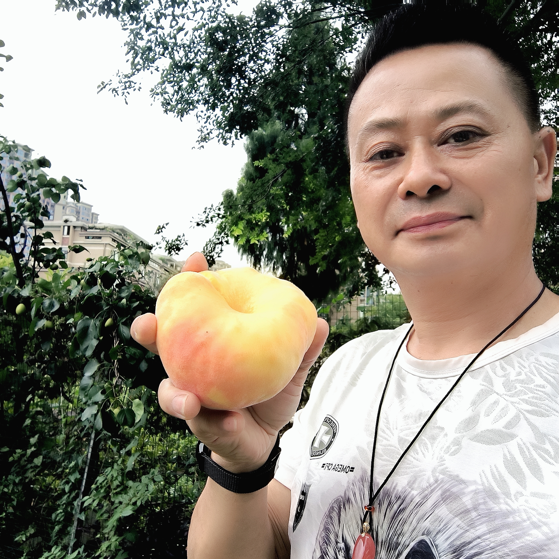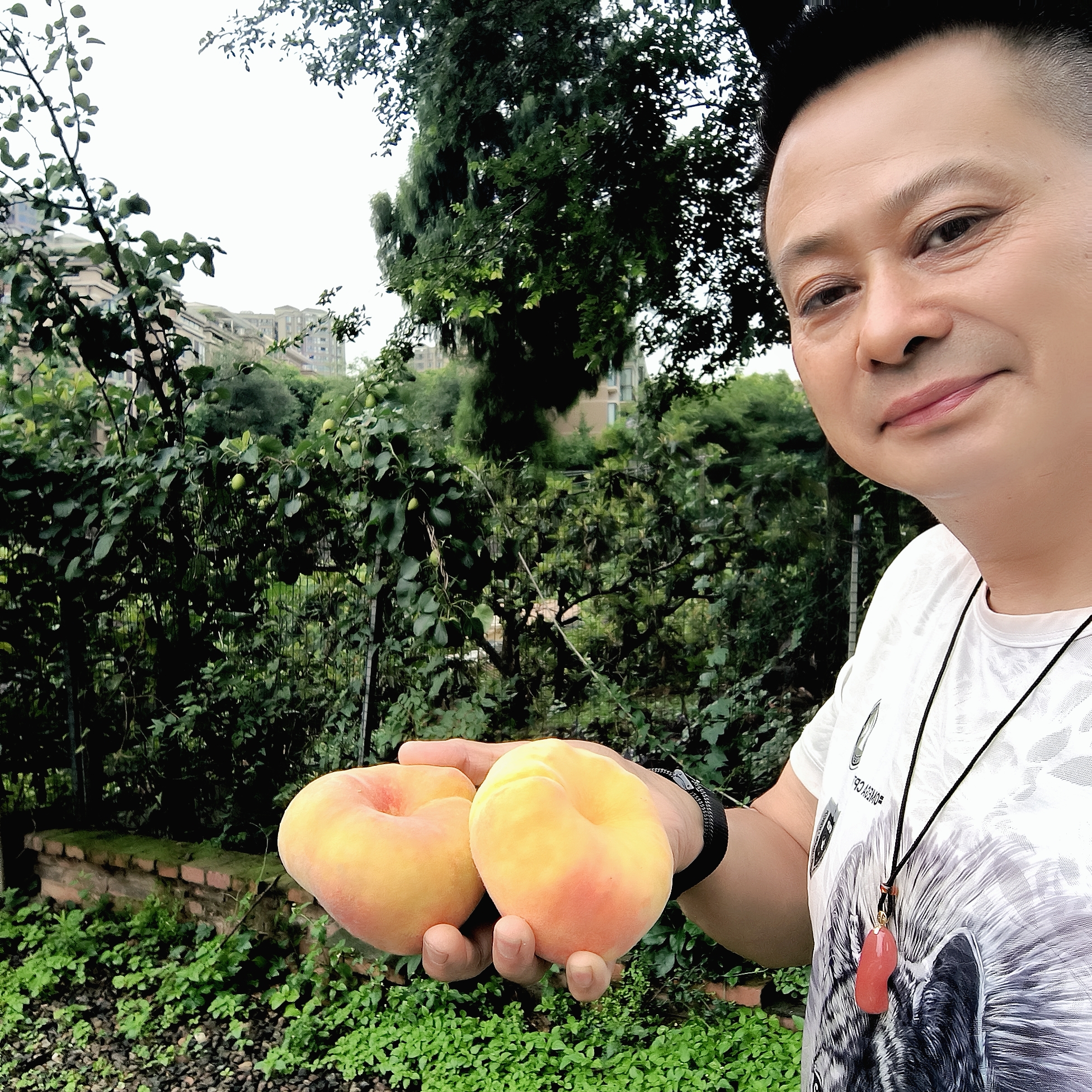 中蟠17號蟠桃:中蟠17號蟠桃七月上、中旬成熟,果子特大,橫徑可以達到80~122 cm,平均單果重 220g,大果300克,果子圓盤形,果形獨特,裂果少,果面黃紅色,果肉黃色,肉質脆,細嫩脆甜,風味濃郁,香氣濃,市場售價高,屬高檔特色品種,是送親朋好友的******品種之一